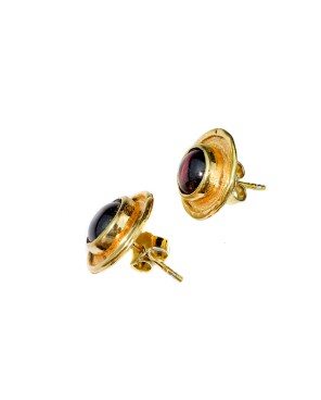 300,00 złOkrągłe kolczyki na sztyftach. W centralnej części oprawiony naturalny granat. Wykonane ręcznie ze srebra 925, złoconego 24k złotem. Istnieje możliwość zmiany kamieni na.