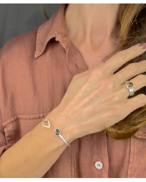 400,00 złBransoletka obręcz z jednej strony zakończona listkiem a z drugiej kamieniem naturalnym - kwarcem dymnym. Całość wykonana ze srebra pr.925.