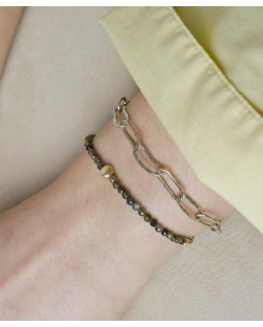 230,00 złKompozycja barwnych jaspisów ze srebrem 925, złoconym. Bransoletka zakończona ozdobnym łańcuszkiem z dużymi ogniwkami, ułatwiającymi zapinanie. Zapięcie klasyczne - wygodny.
