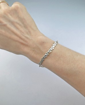 350,00 złBransoletka z elementem ozdobnym- fakturowaną blaszką, zakończona delikatnym łańcuszkiem. Została wykonana ręcznie ze srebra 925. Dostępna również w wersji złoconej.