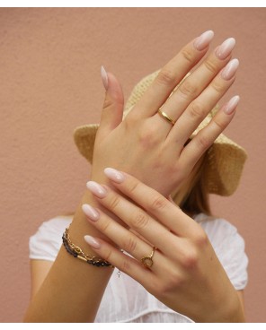 Pierścionki pozłacane wykonuję ze srebra próby 925, które pokrywam 24-karatowym złotem. To biżuteria trwała i dopracowana, wykończona ręcznie. Projekty są lekkie wizualnie, ale solidne w konstrukcji – idealne na co dzień i jako elegancki akcent.