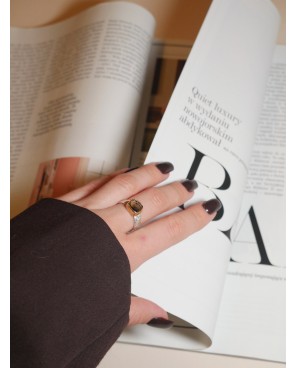 .Pierścionek z kwarcem dymnym na srebrnej obrączce